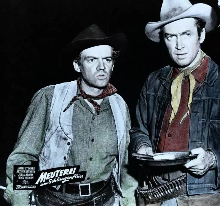 Фильм Излучина реки 1951 раскрывает историю в сюжетной линии как Пятидесятые года XIX века. При сопровождении каравана фургонов через горы, через прерии в Портленд, в поисках новой жизни Глен МакЛинток спасает от линчевания Эмерсона Коула подозреваемого в краже скота. Благодарный Коул помогает Глену и его друзьям отбить неожиданную атаку индейцев, так они становятся друзьями. Подруга Глена Лаура Бэйл увлеклась Коулом и намерена остаться в Портленде...