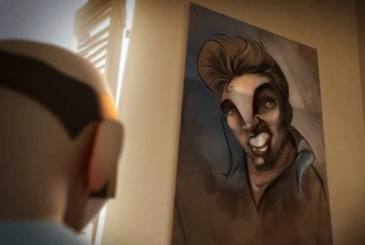 Мультфильм Этой стороной вверх 2009 раскрывает историю в сюжетной линии как О том, как человек старшего поколения знакомится с компьютером и пытается скачать хиты любимого Элвиса Пресли....