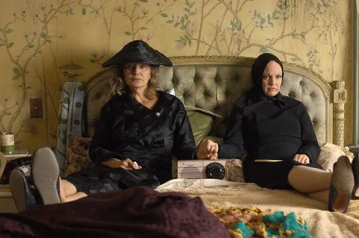 Фильм Серые сады 2009 раскрывает историю в сюжетной линии как Действие в фильме будет растянуто на 40 лет. В этой драме, основанной на реальных фактах, актрисы сыграют двух эксцентричных родственниц Жаклин Кеннеди-Онассис, которые оказались в центре всеобщего внимания после того, как отдел здравоохранения вознамерился очистить их владения в Восточном Хэмптоне, штат Нью-Йорк, от заполонивших эту территорию енотов и мелких насекомых....