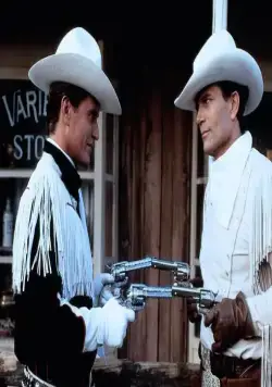 Фильм Ковбойская рапсодия 1985 раскрывает историю в сюжетной линии как Добродушная и местами весьма забавная пародия на старые ковбойские вестерны, в которых хороший, главный герой, обычно поющий песни на фоне кактусов и заката, вступает в борьбу со злодеями, постепенно захватывающими всю землю под выпас овец....