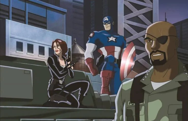 Мультфильм Новые Мстители 2006 раскрывает историю в сюжетной линии как В конце Второй Мировой войны молодой военный по имени Стив Роджерс стал частью эксперимента, благодаря которому США надеялись подавить последние очаги сопротивления нацистов на втором фронте. Результатом эксперимента стал сверхчеловек, «Капитан Америка», оставшийся Стивом Роджерсом лишь в повседневной жизни. Но на первом же задании, атакуя секретный бункер фашистов, Роджерс лицом к лицу...