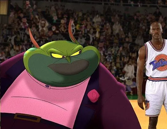 Мультфильм Космический джем 1996 раскрывает историю в сюжетной линии как Мультмонстры с планеты «Гора придурков» вторгаются на Землю, желая захватить персонажей популярного анимационного сериала «Looney Tunes». Земные зверюшки во главе с кроликом Багзом Банни предлагают на спор сыграть в баскетбол, привлекая на свою сторону суперзвезду Майкла Джордана....