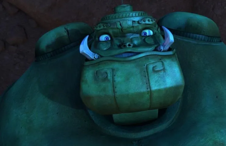 Мультфильм Железяки 2012 раскрывает историю в сюжетной линии как На протяжении многих веков происходила битва между посланным Богом Рамой Хануманом и десятиголовым и многоруким неуязвимым Богом Раваной. В очередном своём воплощении противники оказываются роботами, и Хануману удаётся вонзить цепь в плечо Раваны, после чего Рама поражает их Стрелой Бхармы. Миллион лет спустя обоих откапывает робот-мусорщик и, желая выгодно продать, оживляет с помощью...