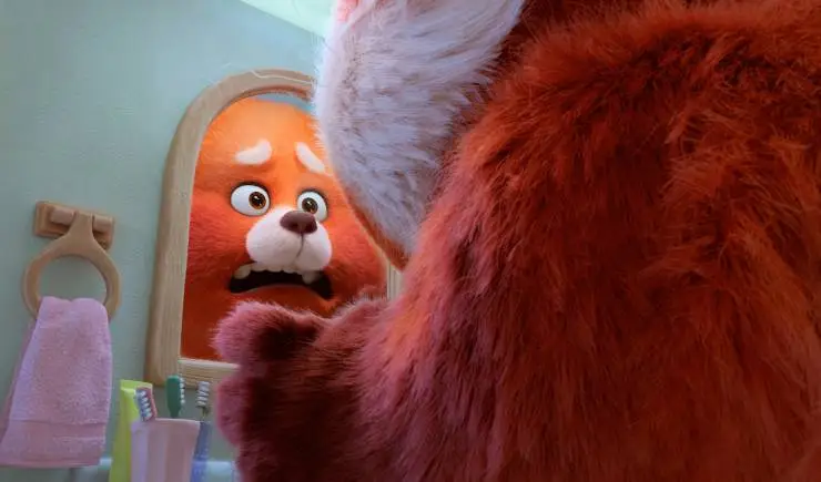 Мультфильм Я краснею 2022 раскрывает историю в сюжетной линии как Торонто, 2002 год. Активная и неунывающая 13-летняя Мэйлинь всеми силами пытается быть первой во всём, чтобы угодить строгой гиперопекающей матери. Семья девочки живёт при храме и поклоняется Богине-прародительнице. Одним прекрасным утром Мэйлинь просыпается и вместо привычного отражения в зеркале видит красную панду — теперь, когда она волнуется, злится или испытывает другие сильные...