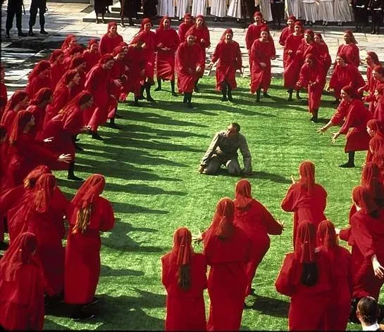 Фильм Рассказ служанки 1989 раскрывает историю в сюжетной линии как В Республике Гилеад царит полуфашистский режим. На каждом шагу военные патрули. Люди в офицерской форме — самые желанные гости в респектабельных домах и самые желанные клиенты во всех государственных и прочих заведениях. Жены людей в офицерской форме — самые чопорные дамы в обществе. У них у всех сплошные достоинства и только один досадный недостаток: они не рожают детей. Потому для...